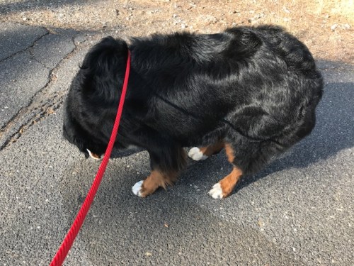 Began walk at 8:30 this time and I let Ziva drag me up the hill called Dalmatia. She was trotting along quickly and sniffing every spot on the road. The large spots are bear pee and she is super interested in those.