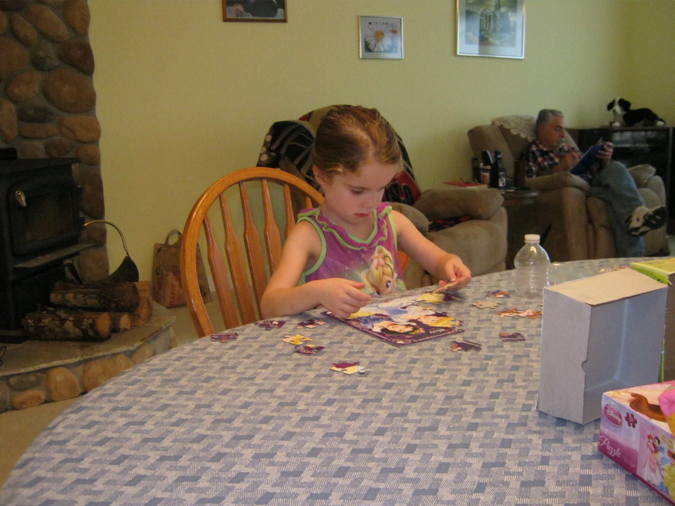 4-years old and tackling a 50-piece puzzle. All by herself. or, “ALL BY MYSELF!”, as she puts it.