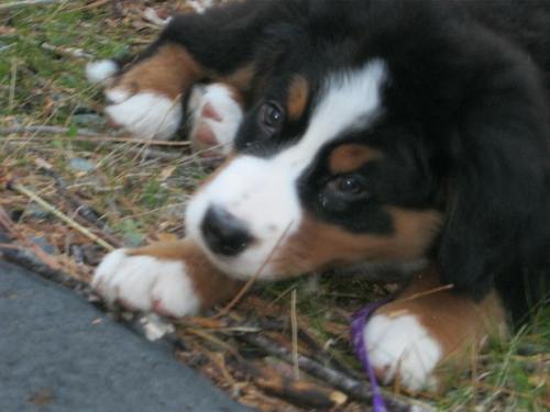 She was so cute as a puppy! Her BMD coloring made it look like she had a mask over her eyes, making her face look like a bandit. She bit people, especially me. I would cry – not because it hurt so bad, but it hurt my feelings. How could my sweet baby bite me? We eventually came to an understanding, that I was the boss of her. This took a lot of training with a professional trainer, but I finally caught on.