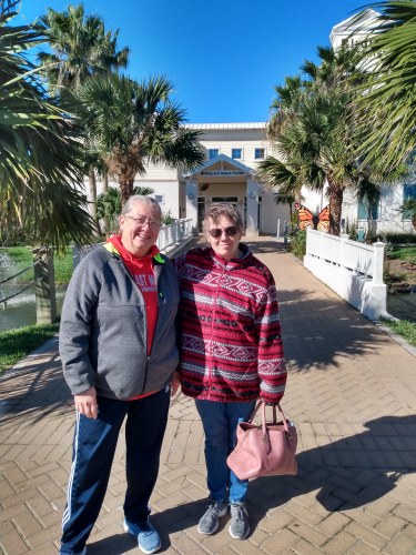 Because it was windy and cold, we decided to check out the Nature Center. It was right across the street from our Hotel. We had no clue there was marshland so close. From the road, you could not see the trail or a bunch of birds flying around. Or any alligators.
