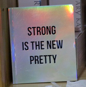 a notebook with the saying “Strong is the New Pretty” boldly on the softcover.