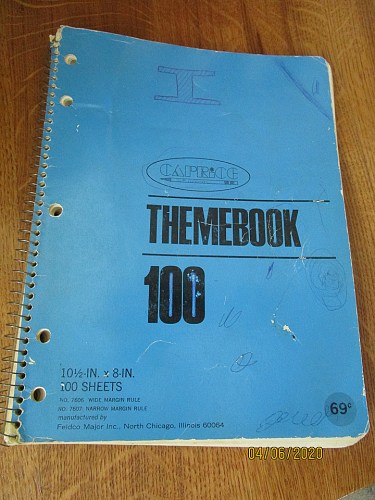 Curious, I dug into my file drawer that had research, old drafts, and false starts. And there it was. My old blue THEMEBOOK 100. Five short stories were listed on the second-page table of contents. (Table of Contents!?) I laughed when I found “Code I LUV U”. That had to be the infamous Emergency! episode. 42 pages (front and back) of pure corn. Beyond corny, corn. Copywrite 1972. The summer between junior high and high school. I was 14.