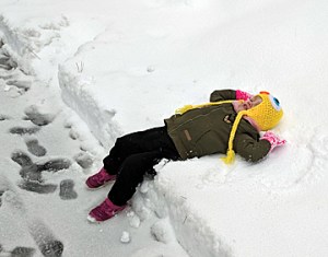 I sure wanted to be outside with her yesterday when she was struggling to make snow angels. The younger, healthier me would have flung myself backwards into the snow bank and flapped my arms and legs until I sunk a few inches. I felt sad that I did not dare to do it. She had a blast trying though – which was the point.